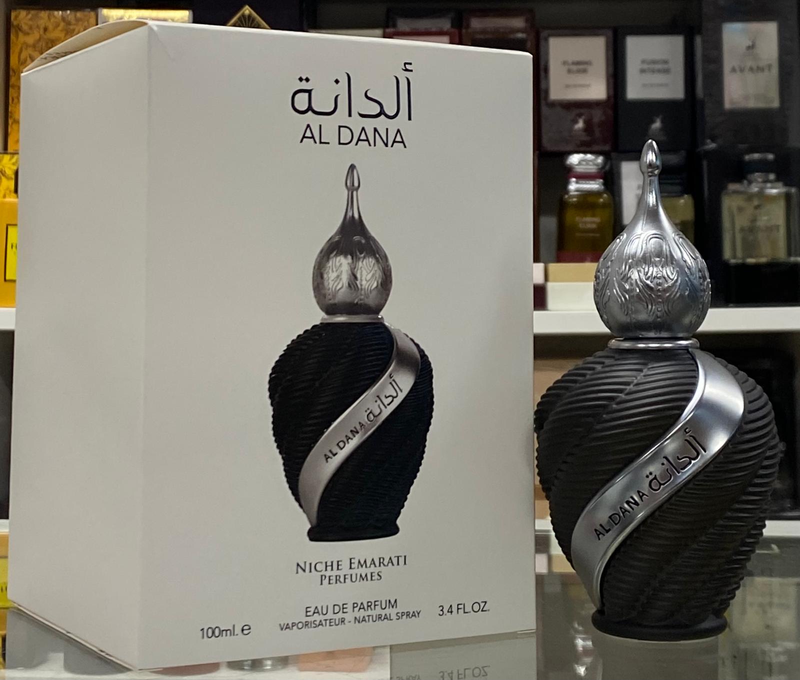 Lattafa Al Dana Eau de Parfum (100ml) is a unisex citrus–floral–oriental fragrance from the Niche Emarati line. It opens with bergamot, lemon, pineapple, pepper, and lime, develops into a heart of jasmine, lily of the valley, and frankincense, and settles into a base of patchouli, amber, woody notes, smoky accords, and musk.