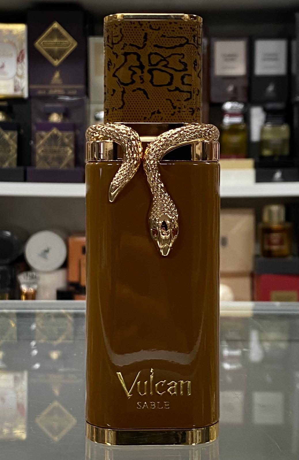 French Avenue Vulcan Sable Eau de Parfum (100ml) is a unisex oriental–woody fragrance launched in 2025, opening with whiskey, coriander seed, mandarin, orange, sesame, and anise, developing into a heart of cocoa, sandalwood, cashmeran, and styrax, and finishing with a luxurious base of vanilla, benzoin, tonka bean, patchouli, cedarwood, and cashmere wood.
