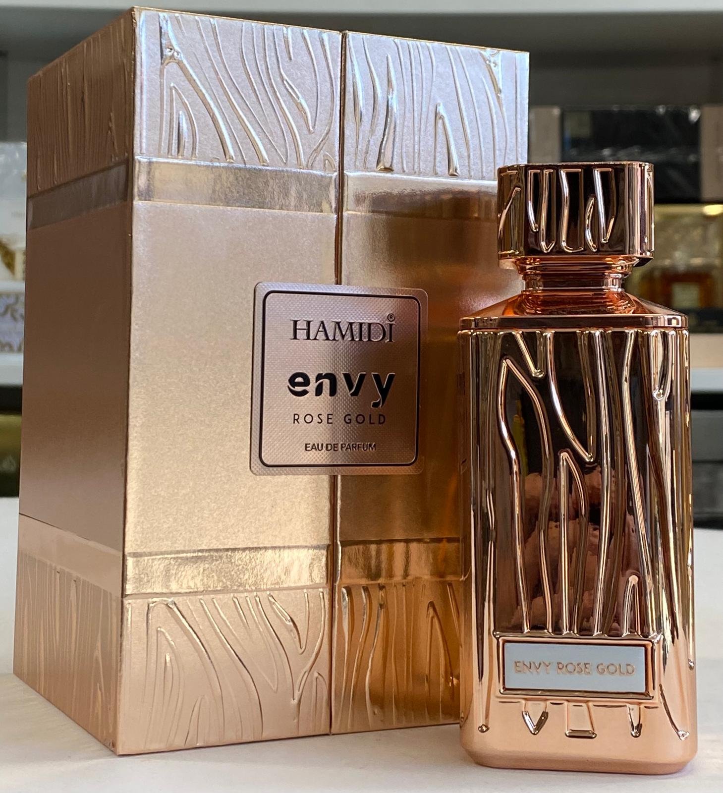 Envy Rose Gold opens with a fresh citrus blend softened by aromatic clary sage. The heart reveals a warm gourmand fusion of roasted chestnut, creamy caramel, and tonka bean. The base settles into smooth sandalwood and earthy vetiver, creating a soft, romantic aura. Though it shares the same notes as Envy Gold, Rose Gold is a more delicate, unisex interpretationβideal for those who love warm florals with a golden touch.
